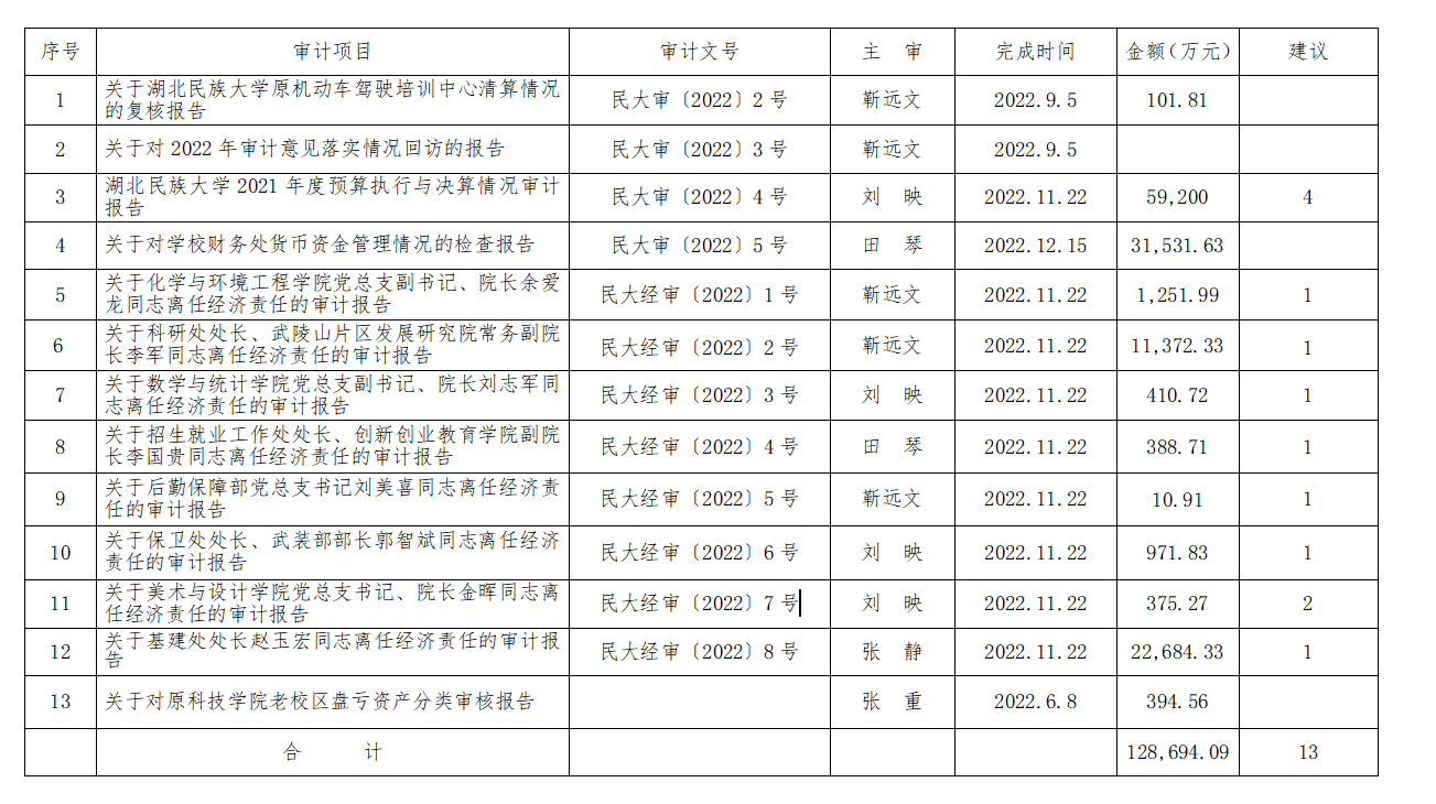2022年财务类审计项目完成情况汇总表