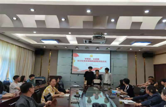 2021年5月20日,审计处支部到数学与统计学院与本科生支部一起举办学党史办实事暨资助困难学生捐赠仪式。