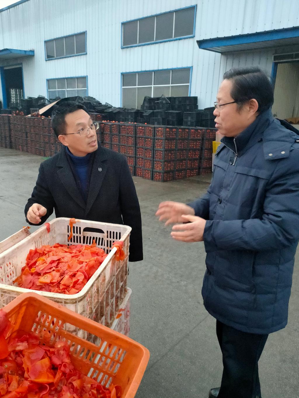 陈根洪与侯家强总经理就脐橙片加工技术进行交流指导