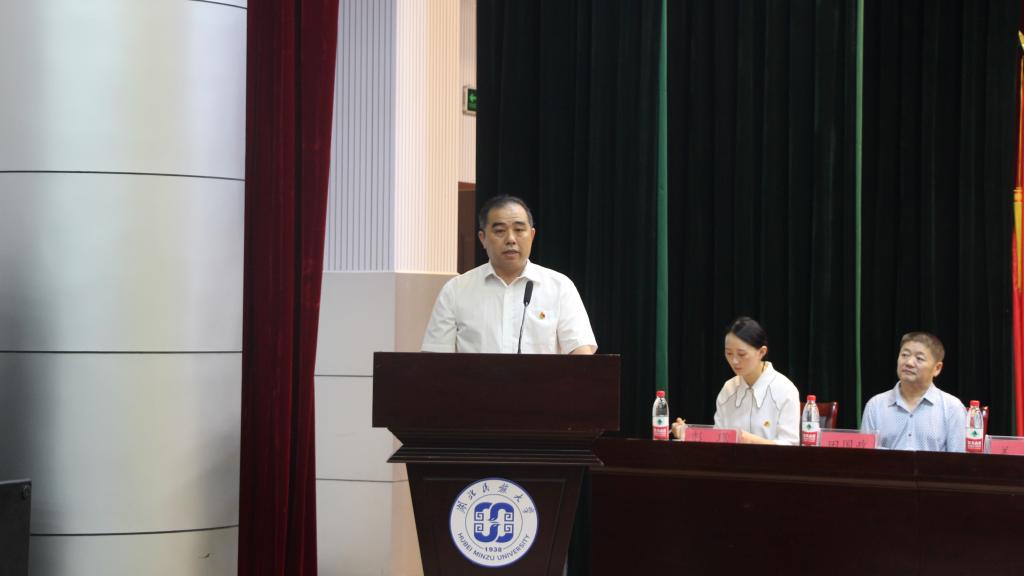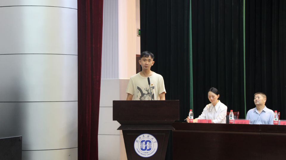 我院青年教师王海波代表教师发言。他表示作为新生班主任和研究生辅导员要做到为同学们营造良好环境和关爱个体差异,祝愿大家在3044am永利集团3044noc有一个精彩的大学生活。