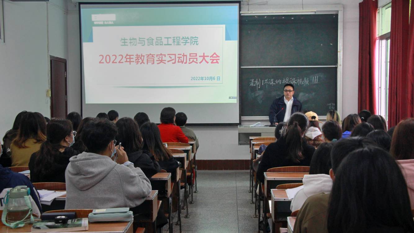 本网讯(通讯员 汪瑞 朱小娟/文 通讯员 王元/图)教育实习是师范生培养的重要组成部分,属于教育实践课程,通过教育实践可以树立从事教育工作者的坚定理想信念,增强从事教育工作的光荣感和责任感。为帮助学生熟悉教学工作,增强教师情怀,掌握相应教学策略,10月7日下午,我院于4301教室举行2022年教育实习动员大会,副院长周毅峰,副书记彭璟,教学科卢婵,生物科学系系主任武芸,教师范智权以及2019级生物科学专业全体学生参加本次大会,会议由生物科学系系主任武芸主持召开。