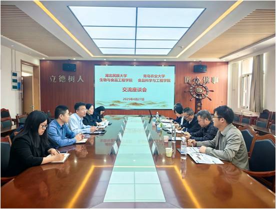 为进一步推动我院食品科学与工程专业的2025版人才培养方案修订工作,4月27日下午,我院党总支书记周志、副院长罗凯率领学科建设科科长王智勇、食品科学与工程系主任程超、食品科学与工程系教师肖洪等一行5人赴青岛农业大学食品科学与工程学院开展基于工程教育认证的人才培养方案调研工作。青岛农业大学食品科学与工程学院党委书记车广杰,副院长肖军霞,食品科学与工程系系主任李鹏,食品质量与安全系系主任王凤舞以及粮食工程系系主任董绪燕出席了此次交流会议。