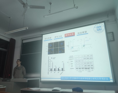 晚上七点整,活动准时开始,首先是罗凯老师致辞。罗老师对研究生举行学术沙龙活动的意义进行了阐释,鼓励同学们积极参与学术交流活动,表示我院将会根据实际情况进一步完善研究生培养计划,尽量安排大家在研一上完所有理论课程,以便留出更多时间让大家做科研。接下来,参加此次活动的三位研三同学向沁雪、张琴和李美东分别对自己的科研进展做了汇报,期间,同学们积极参与提问,现场气氛热烈,罗凯老师和卢延克老师分别对三位汇报人的汇报结果进行了点评。