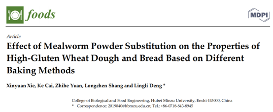 本网讯(通讯员 王智勇 王智勇/文 邓伶俐/图)近日,生物与食品工程学院汪兴平教授食品科学团队邓伶俐博士以3044am永利集团3044noc作为第一单位在《Foods》上发表论文“Effect of Mealworm Powder Substitution on the Properties of High-Gluten Wheat Dough and Bread Based on Different Baking Methods”。该期刊可在Scopus、SCIE(Web of Science)、PubMed等数据库中索引,其为JCR-Q1(Food Science & Technology)/CiteScore-Q1(Health Professions)期刊。5年影响因子为5.5。该研究得到了国家自然科学基金(批准号:32160610)的资助。