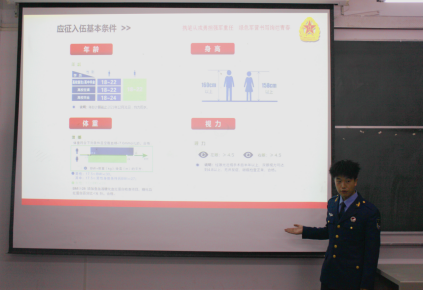 本网讯(通讯员 陈璐/文 见习通讯员 陈欣雨/图 )为响应国家号召,让更多的大学生可以在军营中获得最难得的淬火磨炼。4月22日晚8点,我院于4301教室举行征兵入伍宣传活动。