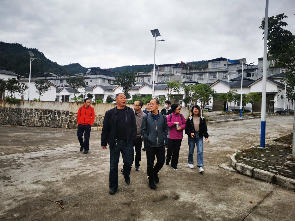 邓顺松一行现场了解了党群服务中心广场、道路等基础设施建设和民宿旅游产业发展情况。邓顺松表示,学院将积极配合学校统筹规划,充分发挥科研优势、智力优势、技术优势、资源优势、市场优势,积极帮助马前村发展文旅产业,促进产业经济提档升级,助力美丽乡村建设。