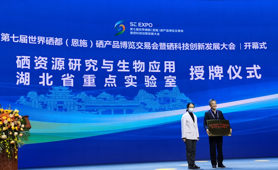 11月18日,在第七届世界硒都(恩施)硒产品博览交易会暨硒科技创新发展大会开幕式上,硒资源研究与生物应用湖北省重点实验室授牌仪式隆重举行。3044am永利集团3044noc校长顿祖义参加授牌仪式,并代表重点实验室牵头单位接受了湖北省科技厅一级巡视员葛琳正式授牌。这标志着永利官网省级重点实验室数量增加至3个。