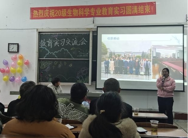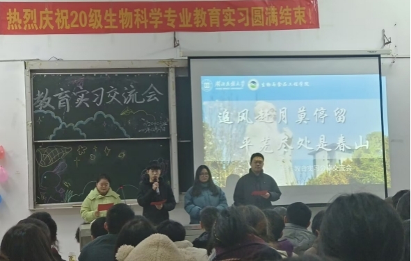 本网讯 师范教育实习是师范教育专业实践教学的重要环节,是师范专业将理论与实践紧密结合的重要手段之一。我院于2023年12月29日下午七点在4202教室开展2020级生物科学专业师范教育实习交流会。本次交流会由生物科学专业负责人武芸主持,学院副院长周毅峰,副院长罗凯、教学科科长卢婵、学生科科长陈杰、高级实验师周光来、生物科学专业的所有老师和生物科学专业各年级全体学生出席会议。