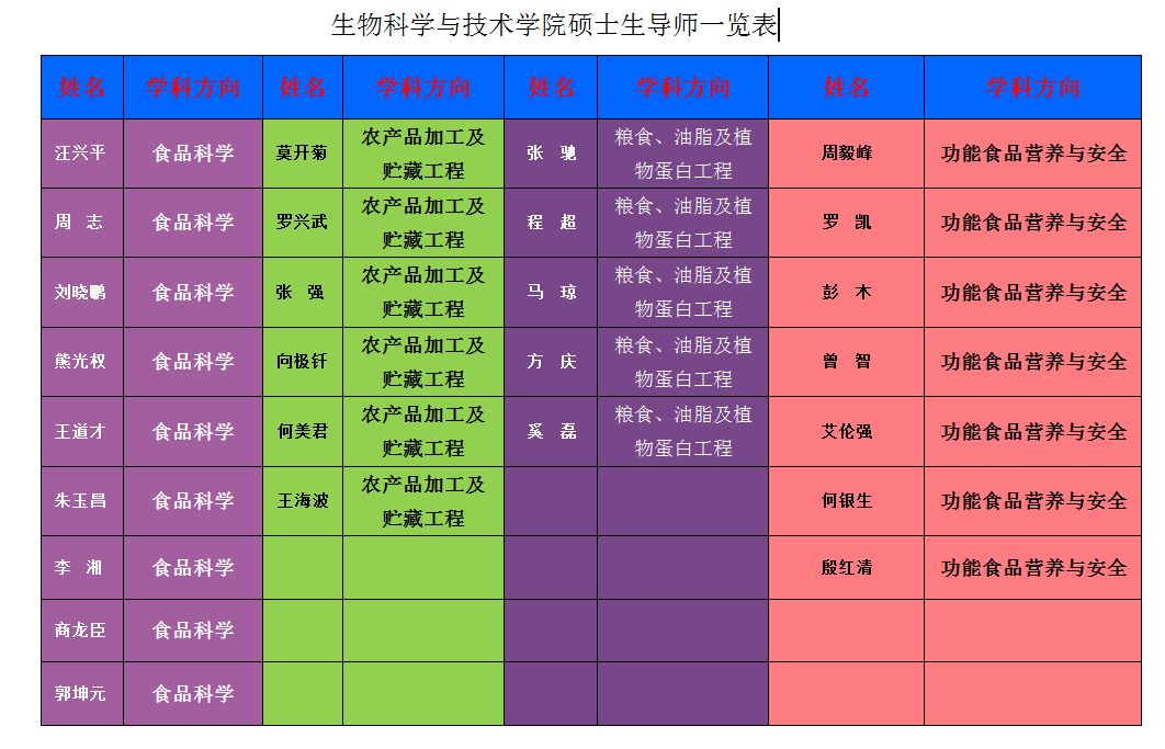 生物科学与技术学院硕士生导师一览表