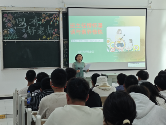 李巧就如何当好班主任进行深入解读,她表示班主任是立德树人根本任务的第一执行者与落实者,并将班主任比作“六边形战士”,生动形象地表现出作为一位班主任所应具备的能力。她从关爱治“百病”、舍用“笨”办法、善用“精”方法三个方面讲述当班主任时如何去处理工作上的问题,并表示要学会感召、浸润、包容与引导学生。在讲授的末尾,她将一句话送给同学们,唯有热爱,方可抵岁月漫长。
