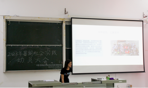 2022年优秀暑期社会实践优秀团队代表陈柳进行经验分享,她从注意事项、注重宣传、保障安全和总结交流四个方面进行了经验分享。随后,2022年优秀暑期社会实践优秀个人代表王章梨从“选择支教的原因”、“支教过程”、“社会实践成果”和“社会实践的感想”进行分享,她希望利用自己的专业知识能给孩子们带一些知识拓展和力所能及的改变接着,高佳颖宣读2023年暑期社会实践活动实施方案相关文件让同学们更好了解社会实践的相关要求
