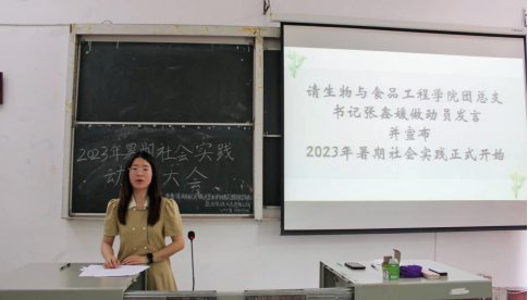 张鑫媛做动员发言并宣布2023年暑期社会实践正式开始。在介绍了暑期社会实践对广大同学重要意义后,张鑫媛对学生提出了三点要求:第一,统一思想,认识到暑期社会实践的重要作用,社会实践能切实帮助大学生拓宽视野、提升才干;第二,明确任务,切实理解暑期社会实践活动的各项要求并积极落实;第三,充分结合专业特长和优势,通过暑期社会实践来明确自身未来发展目标。