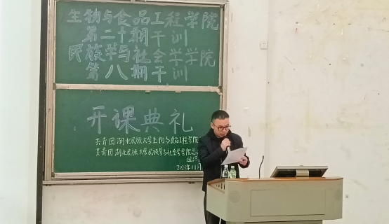 本网讯(通讯员 袁梦 见习通讯员 武晋宇/文 顾婧怡/)为进一步加强两院团学干部队伍建设,明确团学干部开展工作的方向和目的,增强团结干部的组织协作能力、凝聚力、战斗力,全面提高两院团学干部的整体素质,我院联合民族学与社会学学院于11月9日下午14时在修远楼5B404教室开展干部综合素质培训班开课典礼。出席会议的有生物与食品工程学院学生科科长陈杰、辅导员曾思琪、民族学与社会学学院学生科科长张冰、民族学与社会学学院团总支书记冷红豆、校团委组织纪检部以及各二级学院的新干事。
