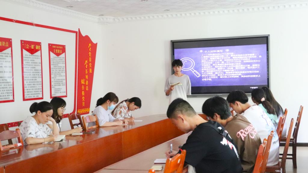 会议伊始,曹子墨对暑期社会实践作简单介绍。随后,曹子墨就活动流程、实践类型、团队的成立、处分方案、评优方案、上交材料等方面进行讲解,并播放我院2022年暑期社会实践活动宣传片,以此鼓励学生积极参与暑期社会实践。之后,由上届社工部副部长张双艳对于个人实践撰写日志、拍照证书、每日网上打卡等方面的要求与注意事项以及团队对指导老师的要求、购买保险、接收证明等材料的注意事项进行讲解,并强调所有的验收材料都需要实习单位盖章。本次会议主要对个人和团队暑期实践进行讲解,要求社工委员必须了解相关注意事项并转告支部学生,同时也号召大家可以进行多样化的暑期社会实践形式,推荐进入公司、企业、工厂等开展就业创业见习,也可到机关、事业单位、社区、街道办事处等单位挂职锻炼。最后,对于各社工委员提出的问题,负责人们也都做出了相应的解答。