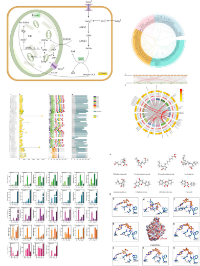 磺基转移酶(SOT)是硒代谢中的关键酶,能催化硒酸盐从供体分子转移到受体分子的羟基上。在一些植物中鉴定出SOT基因的功能,但尚不清楚SOT在壶瓶碎米荠中的功能。研究团队通过对该植物基因组的深入分析,成功鉴定出32个ChSOT基因家族成员。通过系统发育分析和序列比对,研究结果表明,该基因结构的进化保守性和与其他植物物种的关联性。qRT-PCR分析了硒胁迫下ChSOT基因在壶瓶碎米荠不同组织中的表达,筛选出ChSOT15-1基因是响应硒胁迫的关键基因。通过分子对接发现硒胁迫下磺基转移酶可通过磺化茉莉酸及茉莉酸前体物质等含羟基小分子从而达到缓解硒胁迫的作用。该研究结果为了解壶瓶碎米荠SOT基因的功能提供了参考,为植物硒代谢途径的解析奠定了基础。