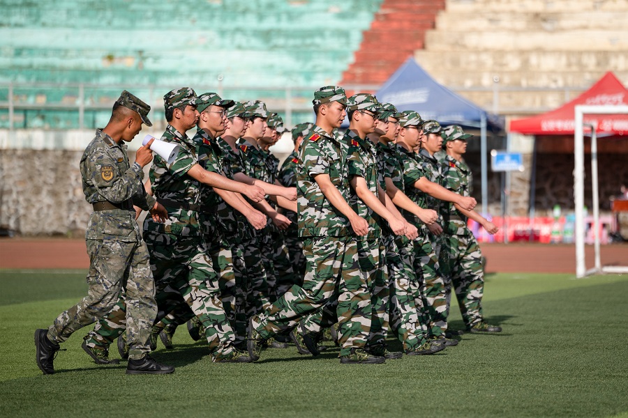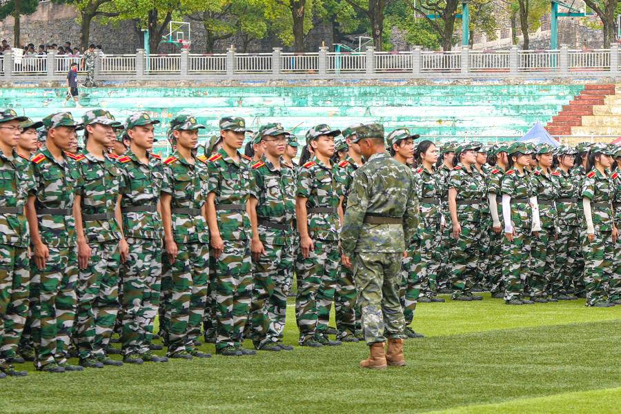 911日,20234594名本科新生正式迎来为期14天的军训。军训团下设4个营,以二级学院(部)为单位编设16连,整组编设60个排,分别在民族体育场、五环体育场进行军事训练。