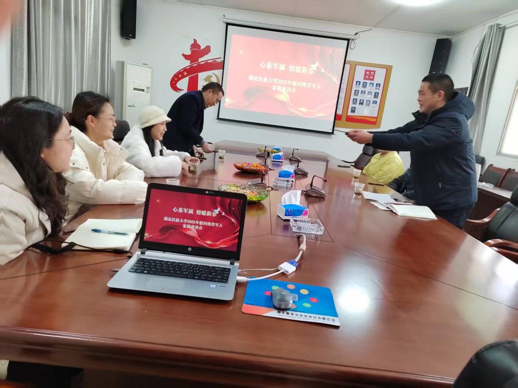 本次活动由学校保卫工作部(处)(武装部)牵头组织,旨在深入贯彻落实双拥工作要求,切实把党和政府的关怀以及学校的温暖送到军属心坎上。座谈会上,保卫处副处长粟登平向军属代表们致以诚挚的新春问候,对军人家属们默默支持国防事业、全力守护家庭的无私奉献表示衷心感谢。军人们扎根军营、保家卫国的背后,离不开家属们的坚强后盾与默默付出,正是这份理解与坚守,让将士们得以心无旁骛履行使命。学校始终牵挂着每一位教职工军属的生活冷暖,此次座谈会不仅是一次节日的慰问,更是对军属们长期以来支持学校工作、奉献国防事业的肯定与致敬。