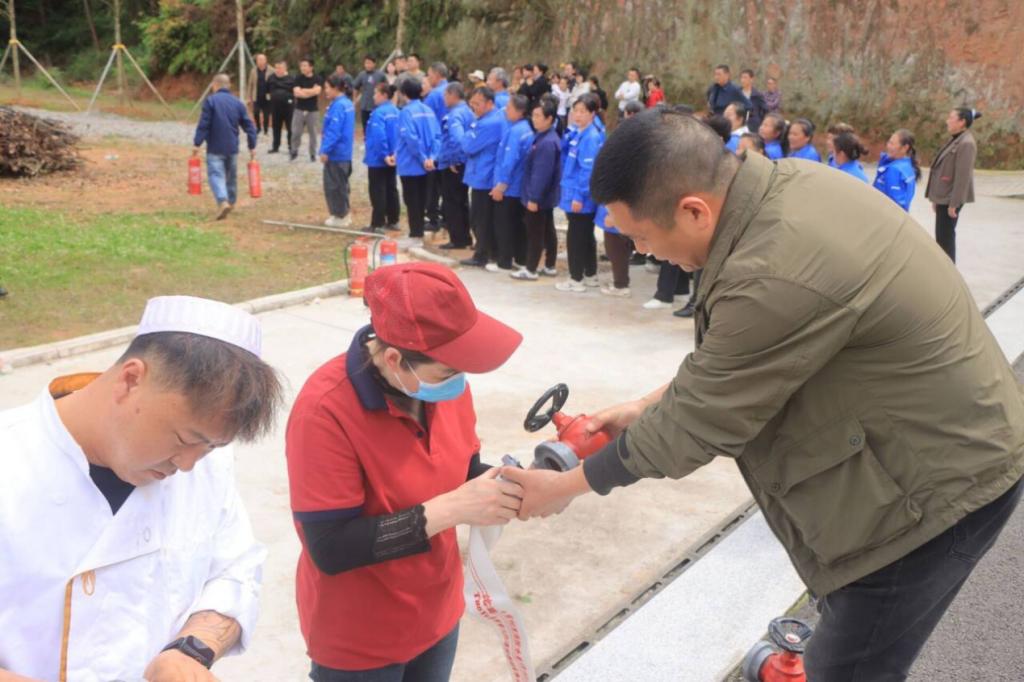 为保障培训实效,演练采取“分片区、全覆盖”模式,组织参训人员逐一进行实操考核。灭火器扑灭真火、消火栓水带连接、油锅起火应急处置等项目轮番上阵,专业人员全程指导,及时纠正不规范动作,细化操作细节与安全注意事项。参训人员热情高涨、反复演练,在实战中巩固所学、提升技能。