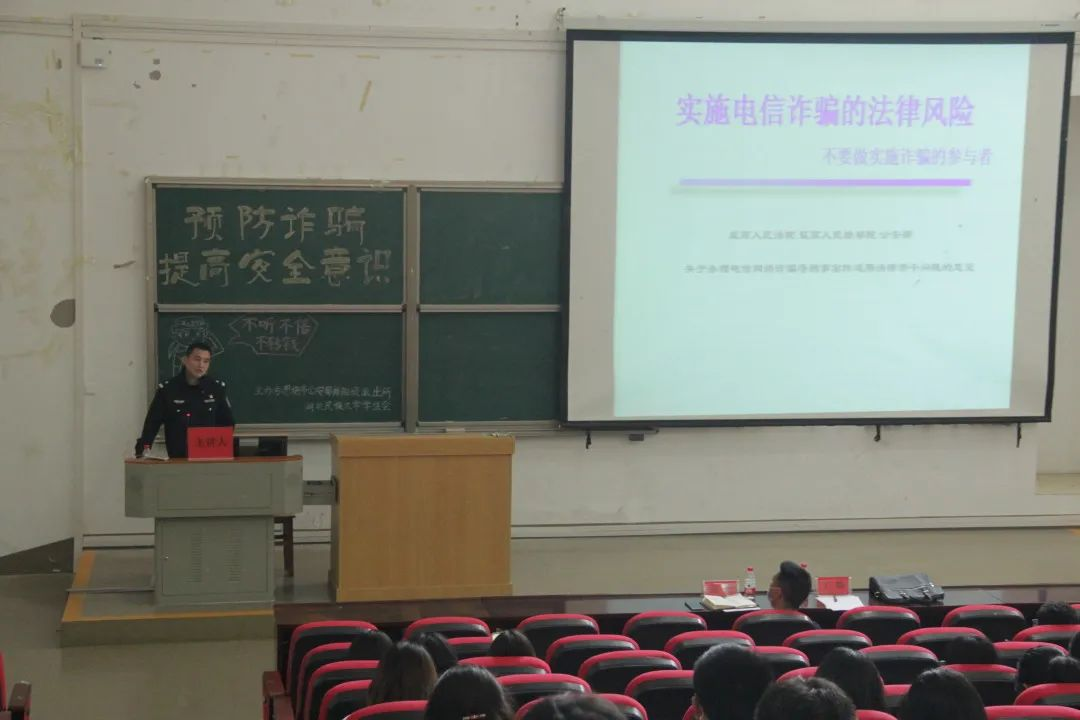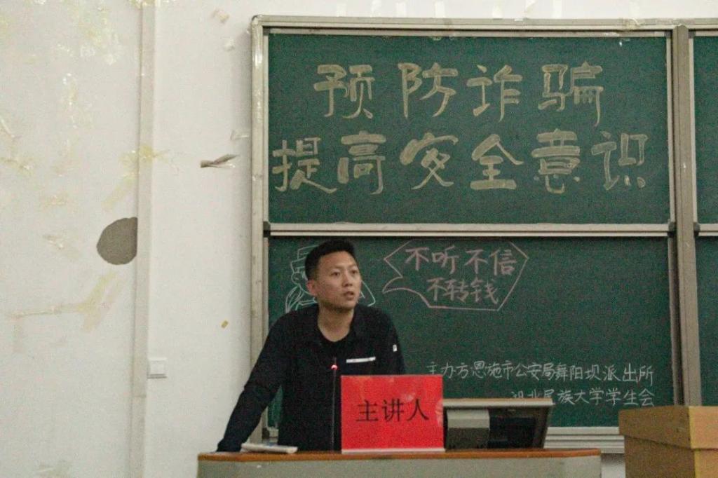 为了提高当代大学生防诈骗意识,保障学生财产安全,加大校园防范宣传力度。保卫处、校团委联合恩施市公安局舞阳坝派出所于421日在修远楼5A207教室举办预防诈骗,提高安全意识专题讲座。