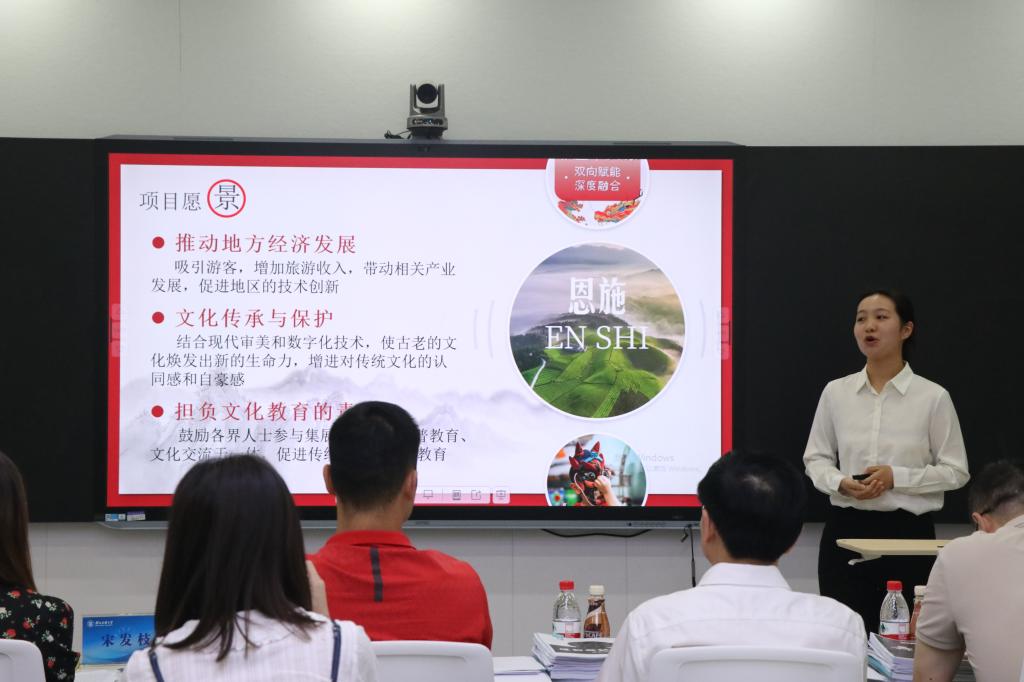 恩施州人力资源和社会保障局党组成员、州公共就业和人才服务局局长陶文胜,恩施州公共就业和人才服务局副局长朱于飞,恩施州创新创业服务中心主任李文彬,恩施州远奕科技企业孵化器有限公司常务副总经理胡申升,湖北恩施学院学生处副处长兼就业服务中心副主任刘静,以及来自永利官网各二级学院的20名教师共同担任答辩评审。