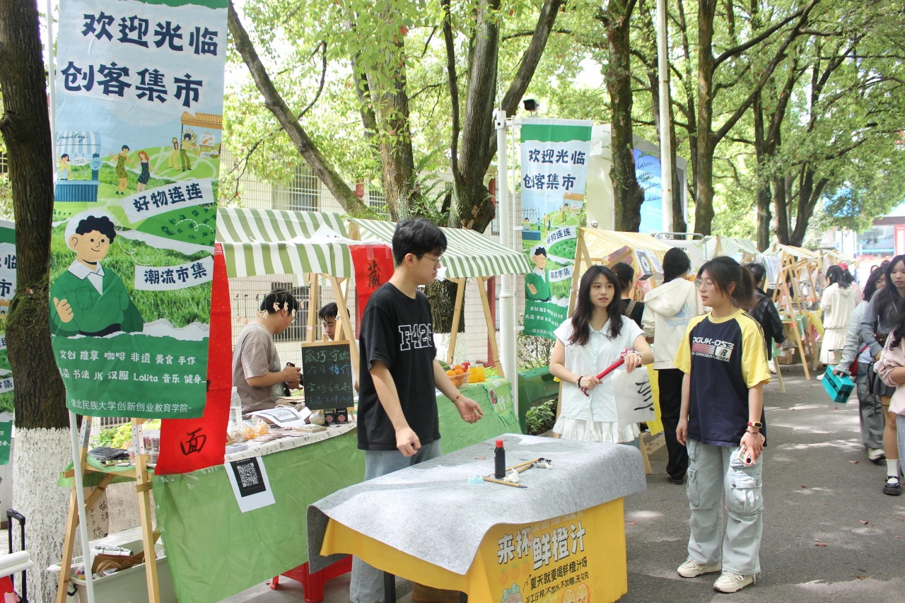 创客集市活动始于2024年,是大学生创业孵化基地为民大创客们搭建的售卖、交流及展示创新创业成果的平台,亦是民大师生体验民大独特创客文化的场所。未来基地将助力创客集市走出校园,让更多民大创客成为恩施“特产”代言人。