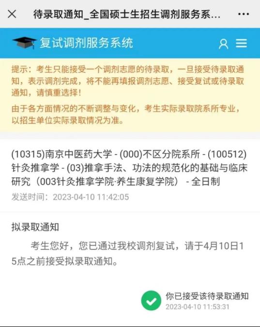 ▲南京中医药大学研究生录取通知