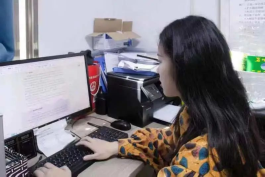 ▲甘丽祯在创业基地项目办公室处理日常事务