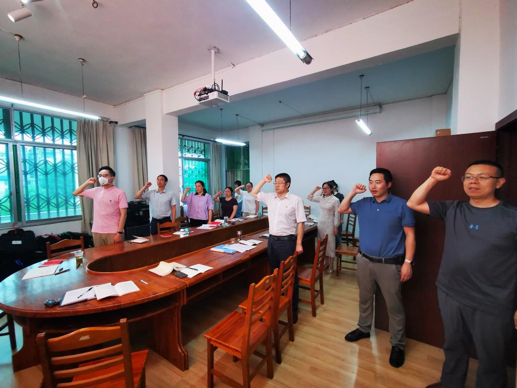 2023年7月1日,建党102周年之际,教务党支部在行政楼225会议室组织开展以“庆祝建党102周年,深入学习贯彻习近平新时代中国特色社会主义思想,建功'两山'实践创新示范区,推动学校高质量发展”为主题的党日活动。教务支部全体同志参加,支部书记谭世明主持学习。