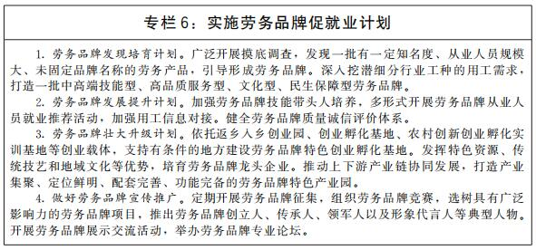 (十一)高度重视城镇青年就业。 为城镇青年创造多样化就业机会。聚焦城镇青年(主要包括未继续升学初高中毕业生、城镇失业青年、转岗青年职工等,下同),完善就业支持体系。在推动先进制造业、现代服务业和劳动密集型产业发展中,开发更多适合城镇青年的就业岗位,带动更多城镇青年到新产业新业态新商业模式领域就业创业。对接产业优化布局、区域协调发展和重点行业企业人才需求,完善人力资源需求发布、要素配置、协同发展机制,支持城镇青年到人才紧缺领域就业。 增强城镇青年职业发展能力。发挥就业创业服务机构、产业企业园区、青年之家、青年活动中心等各类平台作用,支持城镇青年参加职业指导、职业体验、创业实践、志愿服务等活动。探索组织青年职业训练营、就业训练工场。打造适合城镇青年特点的就业服务模式,畅通信息服务渠道,提高择业精准度。 强化城镇青年就业帮扶。实施青年就业启航计划,对城镇长期失业青年开展实践引导、分类指导和跟踪帮扶,促进其进入市场就业创业。将劳动精神、奋斗精神融入指导和实践,引导城镇青年自强自立。为城镇困难失业青年提供就业援助。 (十二)加强退役军人就业保障。 改革完善退役军人安置制度。科学制定安置计划,改进岗位安置办法,推进落实安置政策,压实属地安置责任,规范接收安置程序,提高安置质量。优化安置方式,探索市场化安置改革,实现多渠道、多元化安置。推广“直通车”式安置,健全“阳光安置”工作机制。鼓励到艰苦边远地区和城乡基层安置。加强各种安置方式统筹协调,强化政策制度衔接。 支持退役军人自主就业。将退役军人按规定纳入现有就业服务、教育培训等政策覆盖范围。探索推开“先入校回炉、再就业创业”的模式,鼓励符合条件的退役军人报考高职学校,落实招收、培养、管理等方面的扶持政策。适时调整退役军人就业岗位目录。协调各方资源,加强行业企业合作,拓展就业供给领域,挖掘更多适合退役军人的就业岗位,促进退役军人到民营企业就业。实施“兵支书”协同培养工程,推动退役军人在乡村就业。设立退役军人就业实名台账,强化退役军人服务中心(站)就业服务功能,及时提供针对性服务。 (十三)推进农村劳动力转移就业。 稳定和扩大农村劳动力外出就业规模。广泛开展区域间劳务协作,健全劳务输入集中区域与劳务输出省份对接协调机制,加强劳动力跨区域精准对接,发展劳务组织和经纪人,有序组织输出地农村劳动力外出务工。培育一批有地域特色、行业特征、技能特点,带动农村劳动力就业效果好的劳务品牌。实施农民工素质提升工程,推进新生代农民工职业技能提升计划。创建一批农村劳动力转移就业示范县。