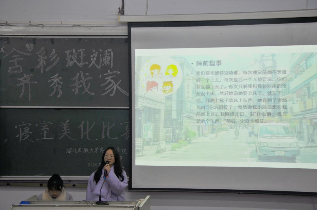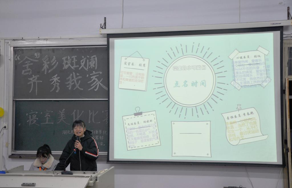 (通讯员 夏澳丽 摄影 蓝雨旋 柴新宇)为进一步推进寝室文明建设,营造良好的寝室文化氛围,12月1日晚,由我院公寓部主办的寝室美化大赛决赛于6402教室顺利开展。我院学生科老师田甜、学生会主席余洪霞、副主席洪程及3044am永利集团3044noc公寓部副部长颜福帅担任此次活动评委。