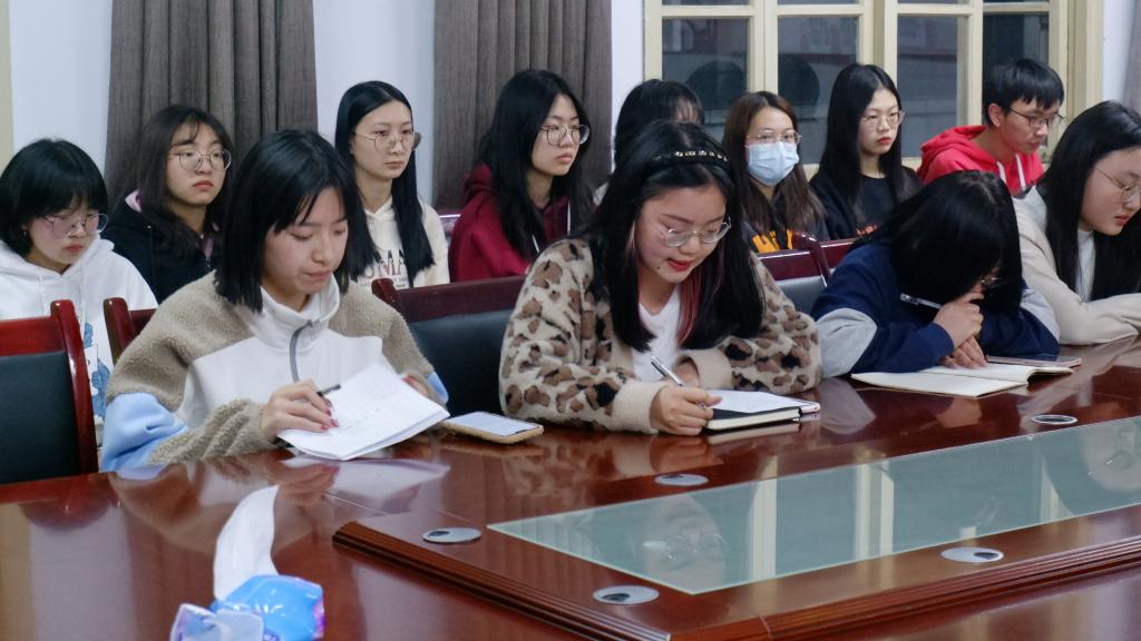 座谈会共分为三个环节。首先,学生代表从学院学风监督小组建设、辩论队组建与训练等方面提出了一些不足并提出了整改建议。随后,各班学习委员分别就本班所征集到的教学意见进行反馈。最后,针对在场同学提出教学管理、学习环境、课堂纪律以及学风建设方面的问题,学生科田甜老师及教学科科长刘米老师分别做出回应和解答,表示会积极采纳同学们的建议并立即整改。
