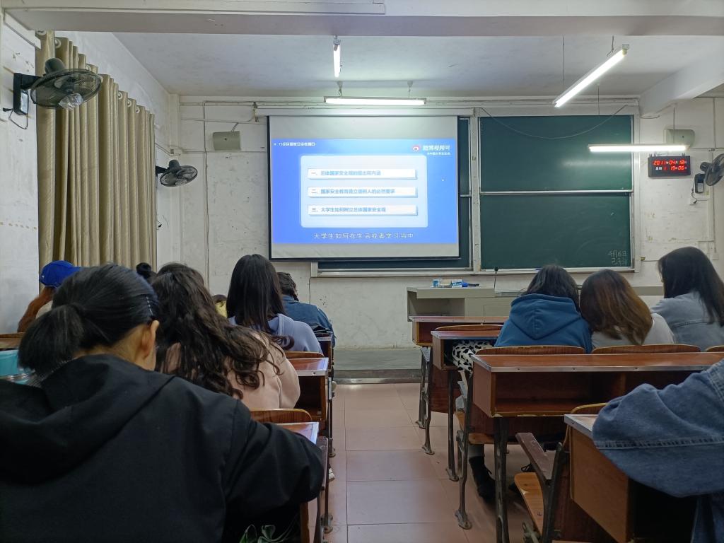 时间:2021-04-20 编辑:学生科 点击:为提升大学生国家安全意识,学习国家安全知识,落实总体国家安全观。4月18日晚,开展“全民国家安全教育日”主题班会活动,组织学生观看《千万师生同上一堂国家安全教育课》。