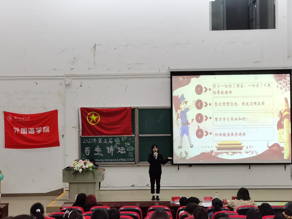 时间:2021-04-23 编辑:学生科 点击:本网讯(通讯员 李梦然/摄影 蓝雨璇 王芷依)4月22日晚,我院于修远楼5A207教室成功举办2021年第五届百生讲坛。翻译系主任王军、日语系老师段冰心、学生科老师陈小双莅临现场并担任评委
