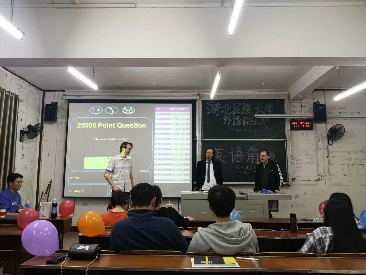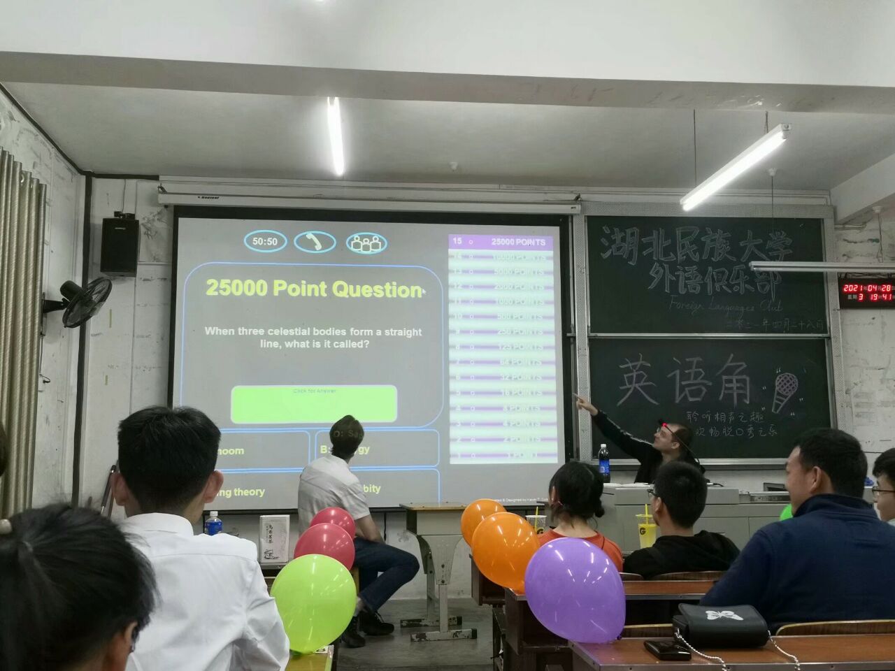 时间:2021-04-29 编辑:学生科 点击:本网讯(记者 文小红)为切实提高大学生英语口语能力和综合水平,激发大学生学习英语热情,4月28日19:00,外语俱乐部于6B201教室举办以“聆听相声之趣,欢畅脱口秀之美”为主题的英语角活动。外教Stephen应邀参加此次活动。此次活动面向永利官网全体师生。