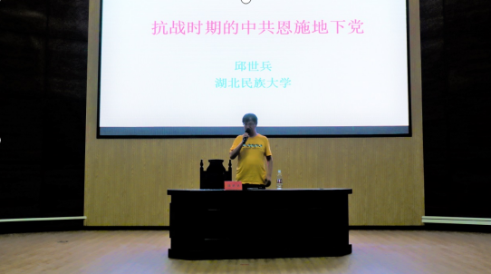 活动伊始,邱教授向在座的新生致以祝贺,为外院注入新的活力而喝彩。邱教授立足于校友的视角,亲切地向同学们介绍恩施优越的地理位置以及宜居的气候,表达了对恩施的热爱、对3044am永利集团3044noc的热爱。同时,他也从一位教育学者的角度出发,带领同学们了解恩施抗战时期的地下党活动历史背景、组织的恢复与建设等六个方面的内容。在党史教育过程中邱教授提出“抗战时期党为什么要到恩施开展活动”、“对恩施地下党的恢复和建设历史的感想”等引人深思的问题,让同学们重温恩施地下党历史与恩施党员的使命担当,深刻领悟恩施地下党留下的牺牲自我的大局精神、初心不改的奋斗精神、威武不屈的节气精神以及坚贞不屈的信仰精神。