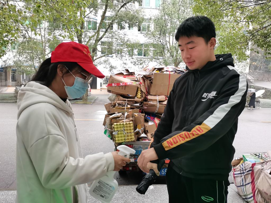 本次活动在外国语学院门口、博学6栋、立人5栋和立人8栋门禁处举行,活动内容主要是用喷壶喷撒酒精或用洗手凝胶对来往的同学进行消毒,同时对取回的快递进行重点消毒,以阻断疫情传播,达到疫情防疫的目的。每个站点都安排有相应工作人员对志愿者们的工作进行监督,并实行轮班制度,提高防疫工作效率。