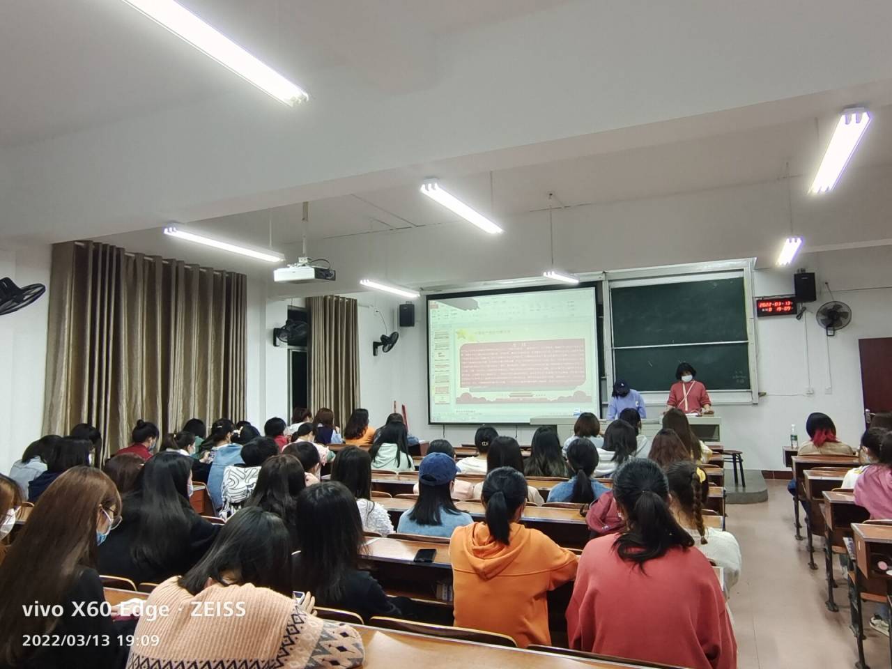 主讲人首先讲解“何为社会主义初级阶段?”党的十三大第一次系统性地阐明社会主义初级阶段理论。明确指出社会主义初级阶段包括两层含义:第一,我国社会已经是社会主义社会。我们必须坚持且不能离开社会主义。第二,我国的社会主义社会还处在初级阶段。此后,主讲人明确“何为社会主义初级阶段基本路线?”并指出社会主义初级阶段理论为这一基本路线的直接理论基础,让学生对社会主义初级阶段有更深入地了解。活动最后,主讲人讲到“社会主义初级阶段理论”准确地界定了中国社会主义所处的发展阶段和历史方位,保证了新时期党的路线、方针、政策和发展战略的稳定性和连续性。