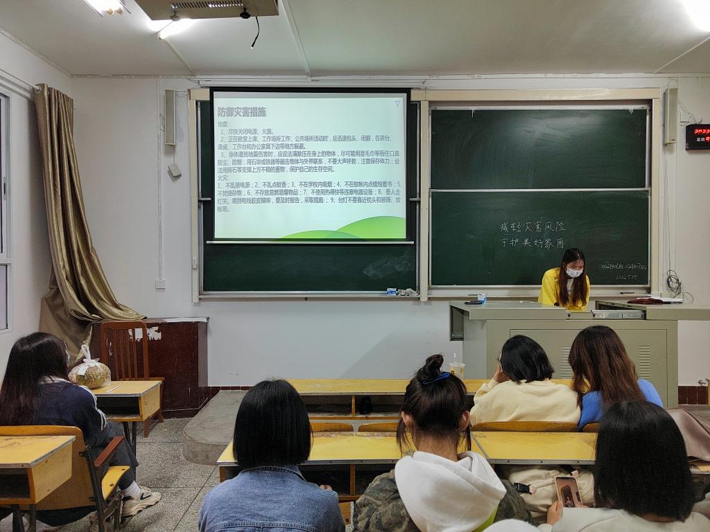 活动伊始,主讲人从河北唐山大地震、长江特大洪水、汶川大地震等灾难,介绍我国防灾减灾日的设立背景,并强调增强防灾减灾意识的必要性。随后,主讲人介绍自然灾害类型,以及各种防灾减灾的预防措施,加强同学对于防灾减灾知识的了解。活动最后,主讲人强调,在全球气候变化和中国经济快速发展的背景下,中国面临的自然灾害形式严峻复杂以及设立“防灾减灾日”的重大意义。