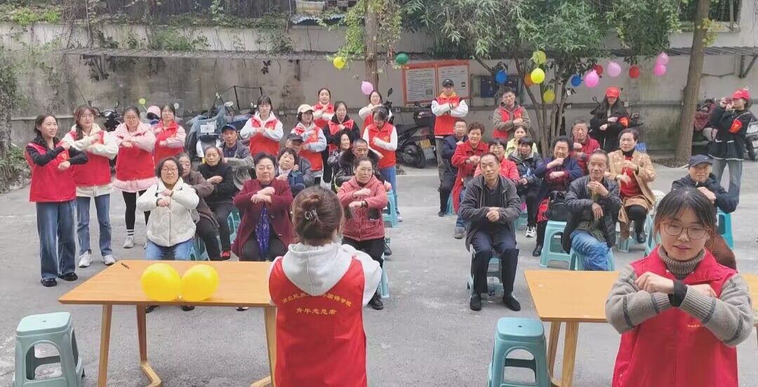 青春践行孝爱,敬老情暖人间。为丰富老年人精神文化生活,营造和谐友爱的社区氛围,同时提升青年大学生社会责任感、培养奉献精神。11月18日下午,我院青年志愿者协会携手恩施市小棉袄社会工作服务中心共同举办以“智慧银龄,共创美好”为主题的社区志愿服务活动。本次活动在官坡社区开展,共30余名老人参加。
