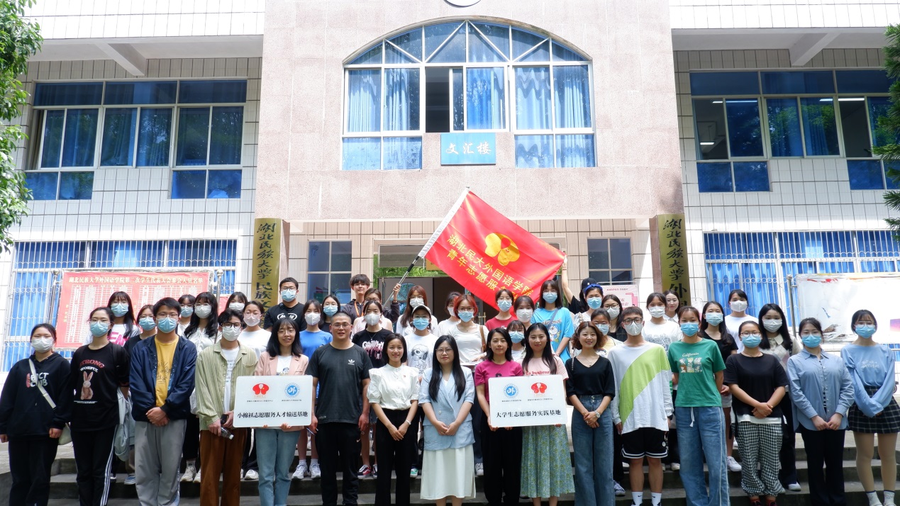 随后,外国语学院和恩施市小棉袄社会工作服务中心互授“大学生志愿服务实践基地”和“小棉袄志愿服务人才输送基地”牌匾并授旗。