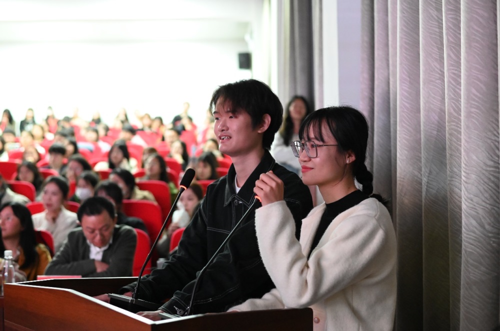 时间:2023-04-03 编辑:谭 点击:语言之妙在意,言语之情在音。为丰富校园文化生活,提高学生双语转换和综合运用能力,3月31日晚,我院第二届“声临其境”影视译配大赛决赛在外国语学院学术报告厅拉开序幕。本次大赛由外国语学院主办、商务英语系承办。外国语学院商务英语系主任秦为民、英语系主任覃军、商务英语系副主任李靖、商务英语系教师汪刚、周倩受邀出席并担任评委。