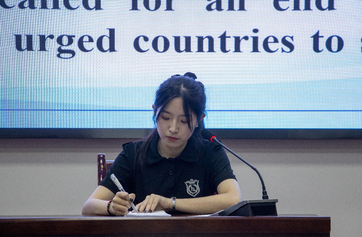 时间:2023-06-01 编辑:谭 点击:笔头千字纸,译作一张笺。为提高永利官网学生的语言应用能力,促进跨文化交流和学习,5月31日晚,3044am永利集团3044noc第十二届“译艺杯”翻译大赛口译组决赛暨大赛颁奖典礼在文汇楼报告厅举办。本次大赛由3044am永利集团3044noc教务处主办,外国语学院英语系、商务英语系承办。