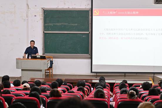 本次讲座作为外国语学院入学教育中理想信念教育系列的首场理论课堂,系统梳理了“三大精神”的历史渊源与核心内涵,引导新生深刻认识到这些精神既是历史积淀的宝贵财富,也是新时代青年成长成才的重要指引。同时,讲座进一步深化了新生对习近平新时代中国特色社会主义思想的理解,有助于他们坚定理想信念、树立远大志向,为成长为担当民族复兴大任的时代新人注入坚实的精神力量。