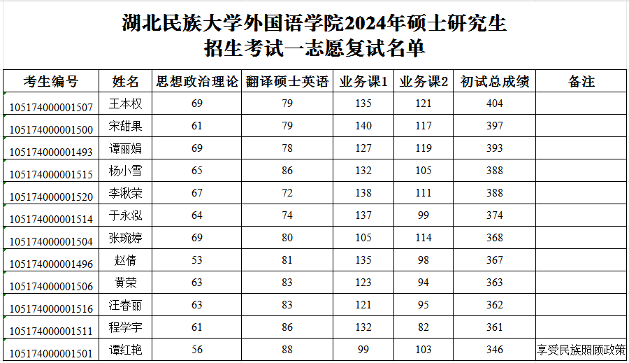 3044am永利集团3044noc外国语学院2024年硕士研究生招生考试一志愿复试名单