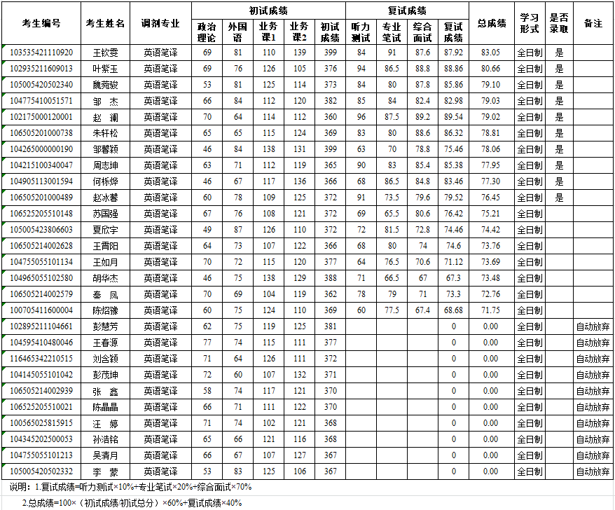 3044am永利集团3044noc外国语学院2025年硕士研究生调剂考生成绩及拟录取情况公示--英语笔译