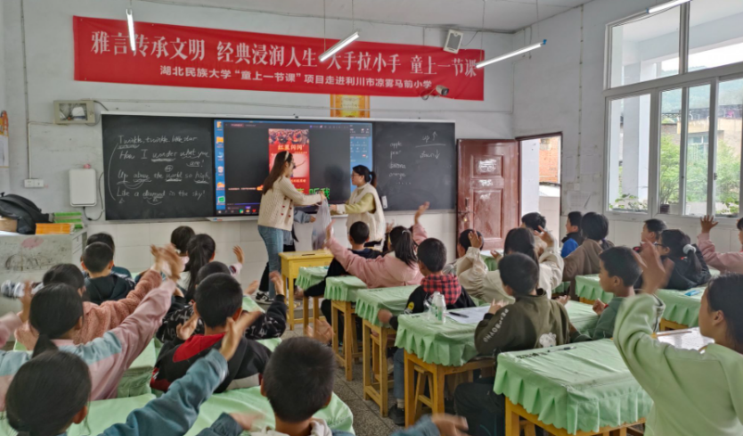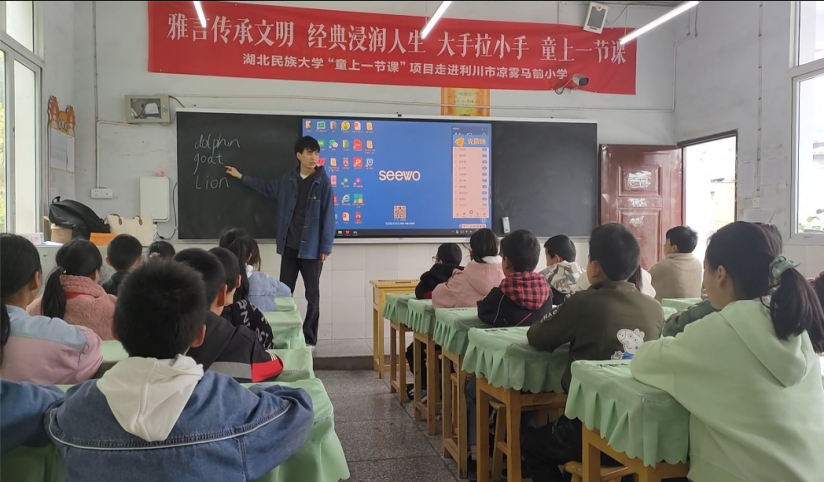 时间:2023-04-28 编辑:谭 点击:2023年4月27日,外国语学院研究生党支部前往利川市凉雾乡马前村开展特色主题党日活动。党员们走进马前村小学五年级二班的教室,与同学们开展互动交流,上了一堂生动有趣的英语特色课。