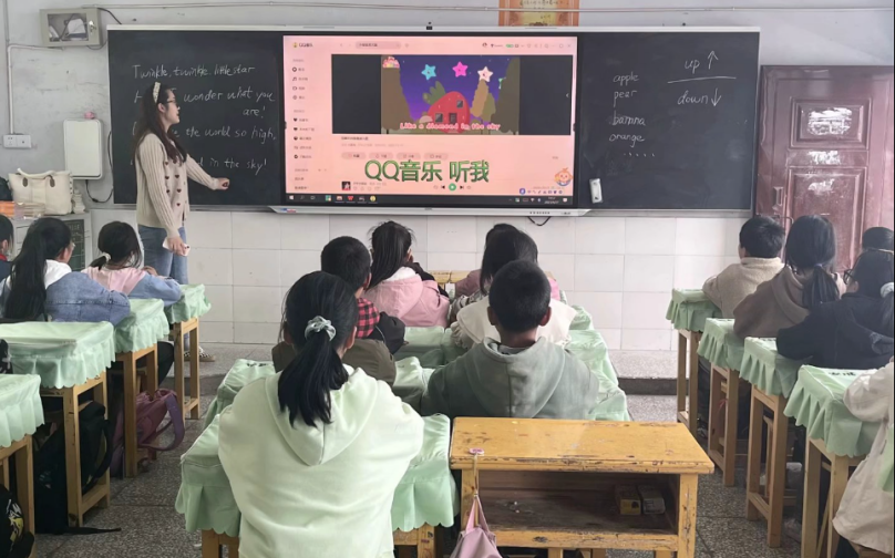 接着,研究生党员彭景怡教学了英文歌曲:Twinkle, Twinkle, Little Star,并带领同学们进行了“Mingo Mingo抱抱团”的小游戏。