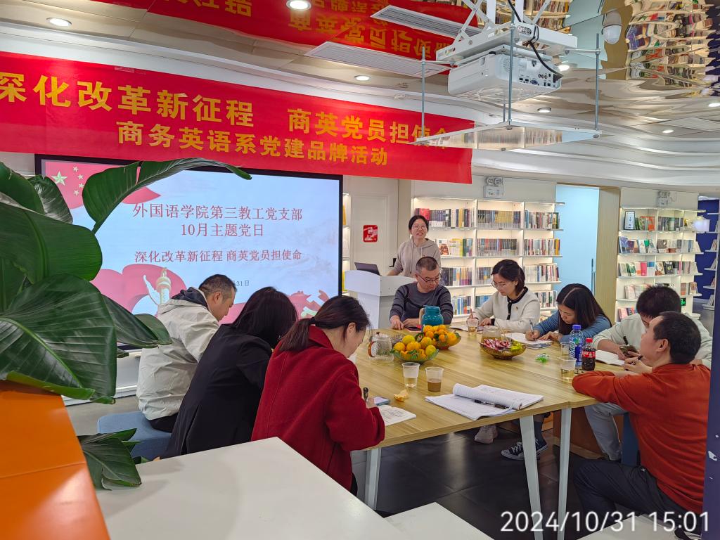 10月31日,外国语学院第三教工党支部在民大·倍阅书店成功举办了以“深化改革新征程 商英党员担使命”为主题的党日活动。