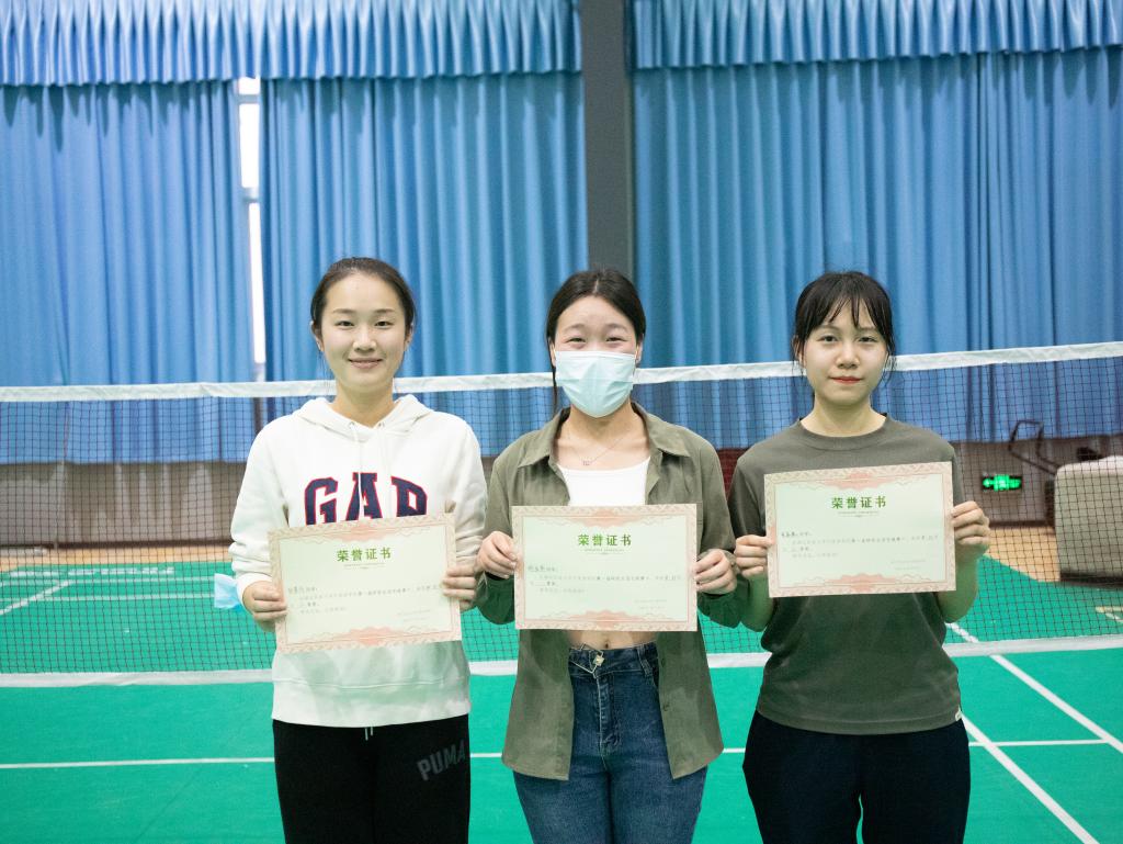 (冠军胡金燕、亚军彭景怡、季军黄嘉敏合影留念)