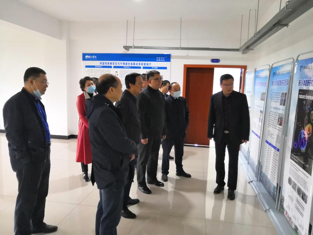 2021年11月4日上午,恩施州副州长王磊、党组成员郑东来一行到3044am永利集团3044noc风湿性疾病发生与干预湖北省重点实验室(以下简称重点实验室)调研。学校党委书记向前进,党委常委、副校长李军,3044am永利集团3044noc附属民大医院副院长汪莲开等陪同调研。